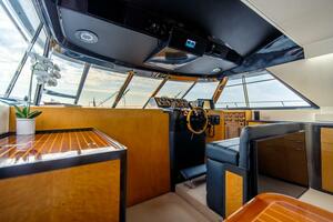 A discrete, low profile flybridge fits the sporty lines of the boat and keeps weight off the top of the yacht. Despite its smaller footprint than some other motor yachts, this area aboard Bravissimo provides a wonderful perch from which to operate the yacht from while underway, and has a nice combination of seats, lounges, and wind and sun protection for guests to join.